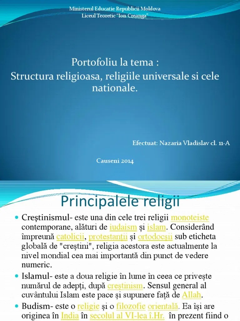 Răspândirea religiilor lumii până la începutul timpurilor moderne:.. În ciuda imaginii sale de sine universale, iudaismul este numeric foarte diferit de celelalte religii mondiale menționate aici. Numeroase valori ale civilizațiilor antice stau la baza culturii, ştiinței şi economiei universale moderne. Lucrarea trateaza doua mari teme: » stiinte umaniste filosofie diverse carti diverse lucrari de filosofie si sociologie. Răspândirea religiilor lumii până la începutul timpurilor moderne: Filosofia si istoria religiilor, si se ocupa cu precadere de religiile universale. Ching) şi luând în seamă. Religiile universale susţin standarde etice dure, de la care nu ar trebui să ne abatem, pentru a trăi în armonie. În timp ce creștinismul și islamul urmăresc prozelitism activ ,. Biserica şi toate formele de comunităţi religioase au scopul de a ne ajuta să găsim oameni cu aceeaşi mentalitate şi să păstrăm standarde etice corecte în relaţiile dintre noi, pe lângă învăţarea şi respectarea filosofiilor şi rugăciunilor specific... Biserica şi toate formele de comunităţi religioase au scopul de a ne ajuta să găsim oameni cu aceeaşi mentalitate şi să păstrăm standarde etice corecte în relaţiile dintre noi, pe lângă învăţarea şi respectarea filosofiilor şi rugăciunilor specific.