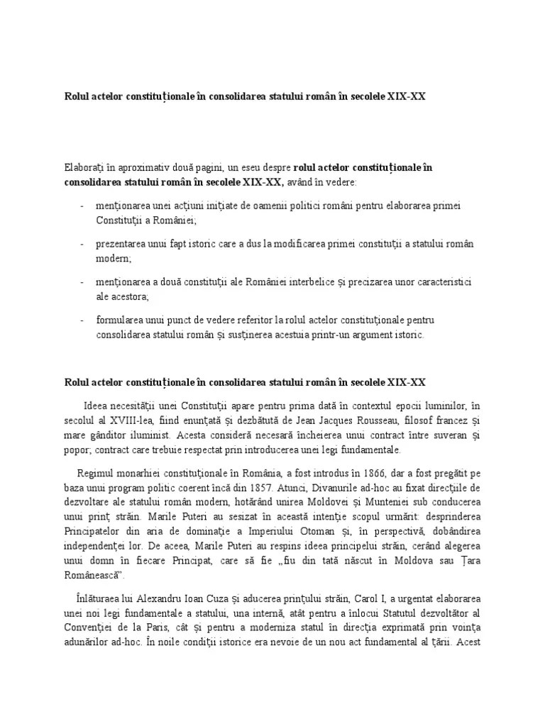 Guvernul este definit în legea nr.90/2001 privind organizarea şi funcţionarea guvernului româniei şi a ministerelor ca autoritatea publică a puterii executive, care funcţionează în baza votului de încredere acordat de parlament şi care asigură realizarea. 21/06/2017 · structura unui eseu în următoarele pagini, profesorii noștri de istorie vor aprofunda structura unui eseu de bacalaureat la disciplina istorie, astfel ca tu să fii pe deplin pregătit în momentul examenului de bac. Fiecare explicație vine cu exemple relevante care, sperăm noi, îți vor facilita înțelegerea și te vor face să nu mai ai emoții… Numirea guvernului se face de presedintele romaniei pe baza votului de incredere acordat de parlament. Guvernul este definit în legea nr.90/2001 privind organizarea şi funcţionarea guvernului româniei şi a ministerelor ca autoritatea publică a puterii executive, care funcţionează în baza votului de încredere acordat de parlament şi care asigură realizarea... Numirea guvernului se face de presedintele romaniei pe baza votului de incredere acordat de parlament.